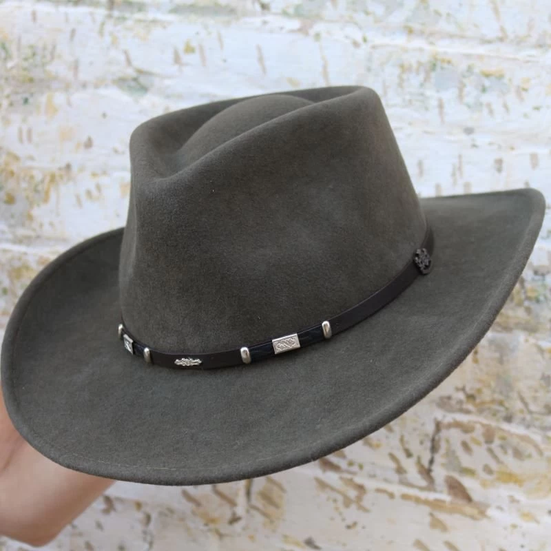 Teardrop crushable wool crossover with downturn 3 1/8 inch brim.