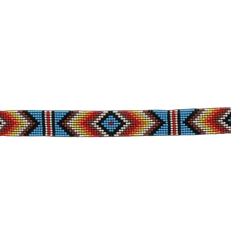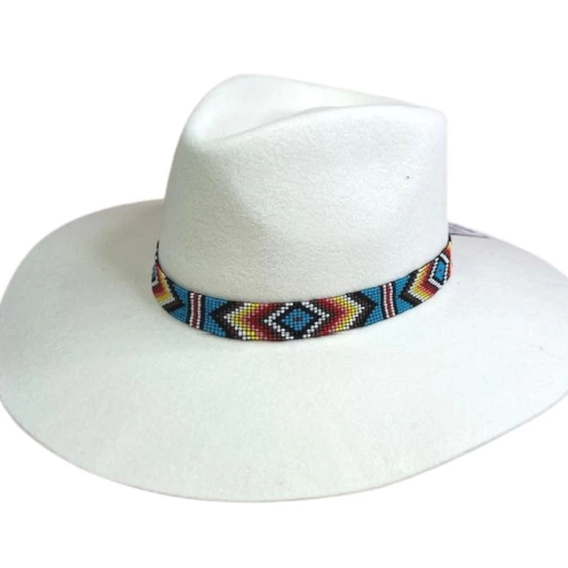 Dress up your favorite hat with this beaded hatband.Stretch to fit in a southwestern pattern of multi colored beads.