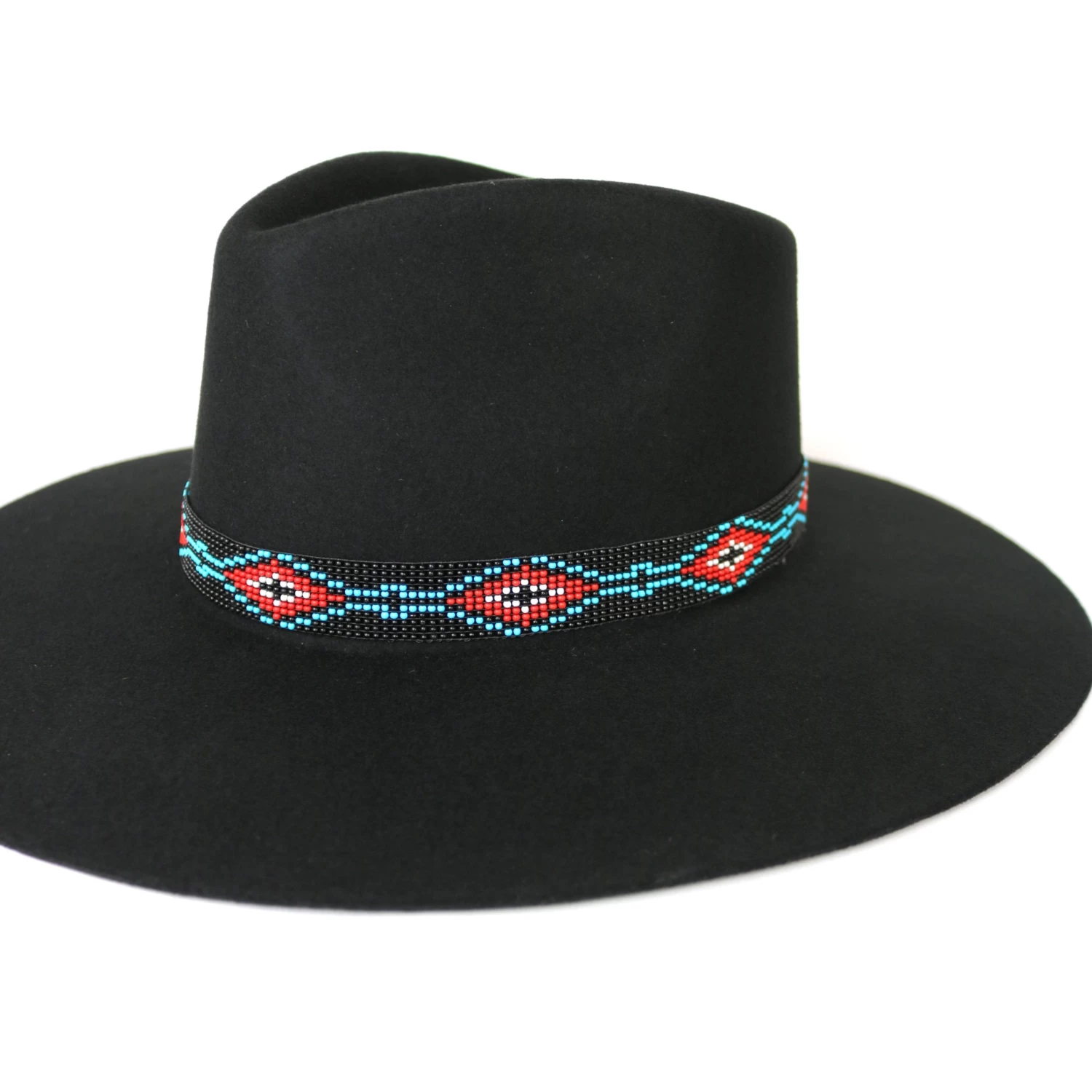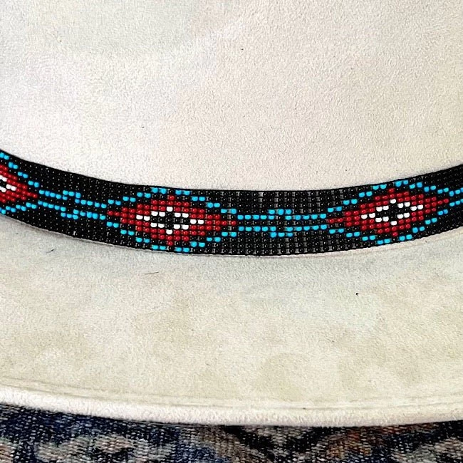 Dress up your favorite hat with this Twister beaded hatband by M&F Western Products. Stretch to fit in a southwestern pattern of black, blue, red and white beads.